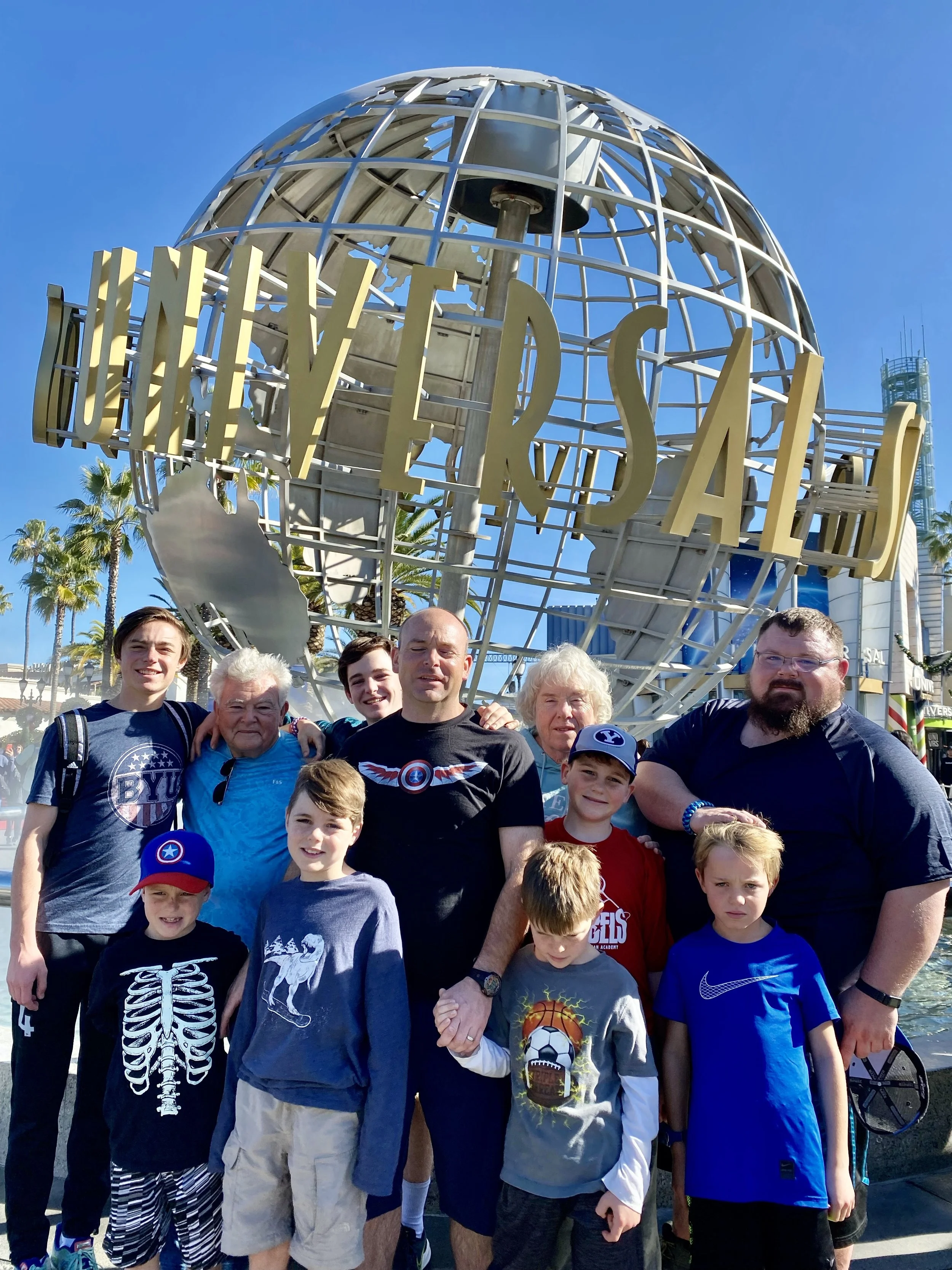 Universal Studios - two days - McKade, Caleb, Zeke, Bowen; Jacob, Jim, Titan, Jared, Judy, Beckett and Uncle Joseph