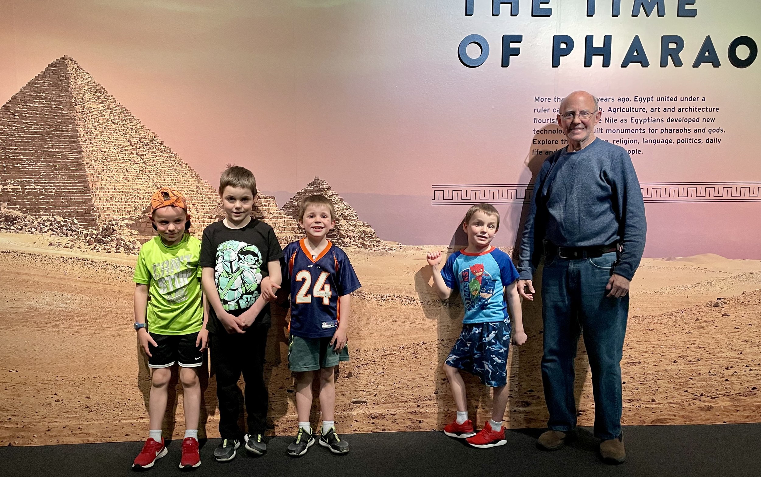 March 2022 Trip with Grandpa Fred and JJ to a fabulous exhibit, The Time of the Pharaohs, at the Denver Museum of Nature and Science - Bowen, Caleb, Zeke, McKade and Grandpa