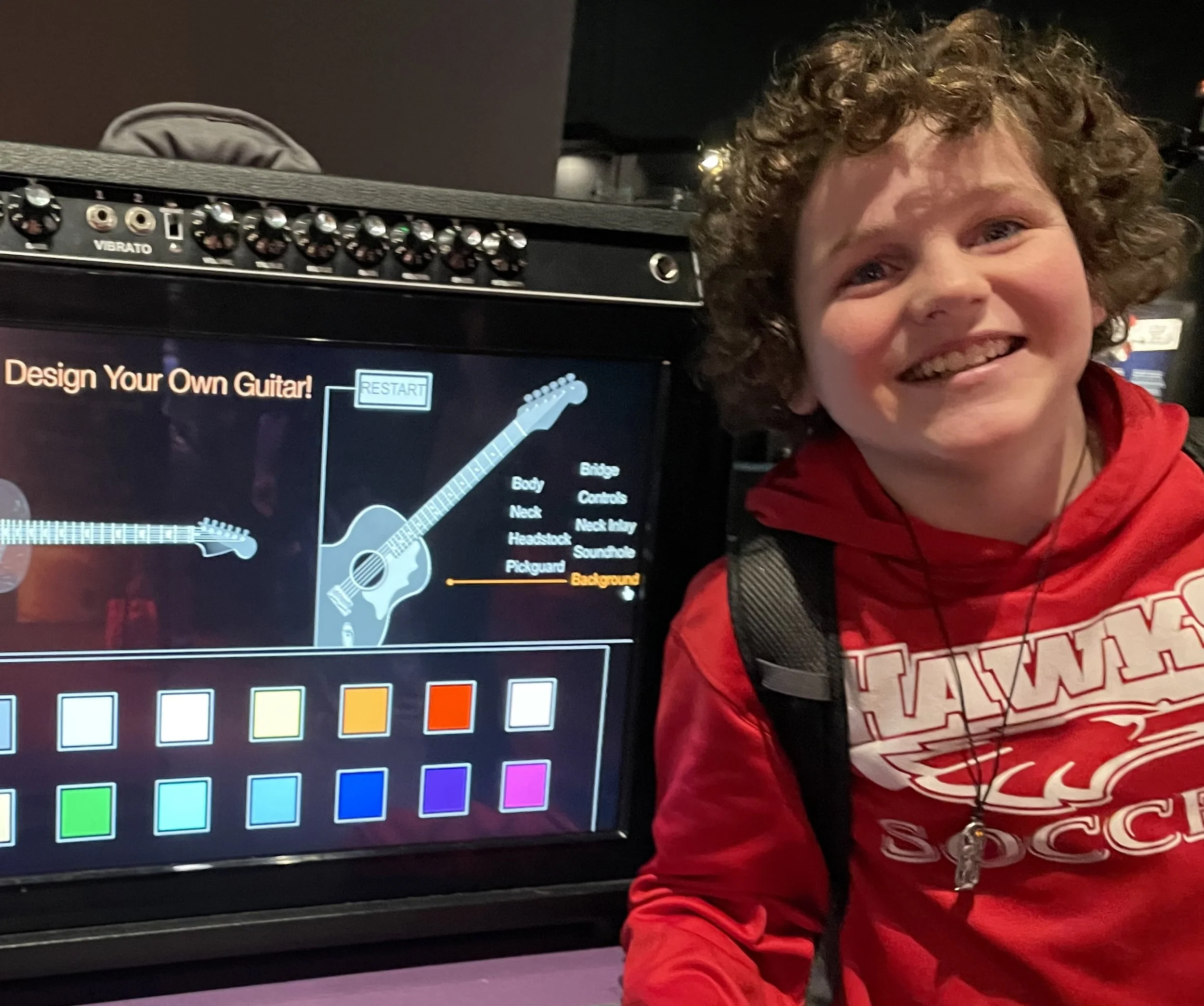 Beckett, age 11, Summer 2022 - Guitar Exhibit at Denver Museum of Nature and Science