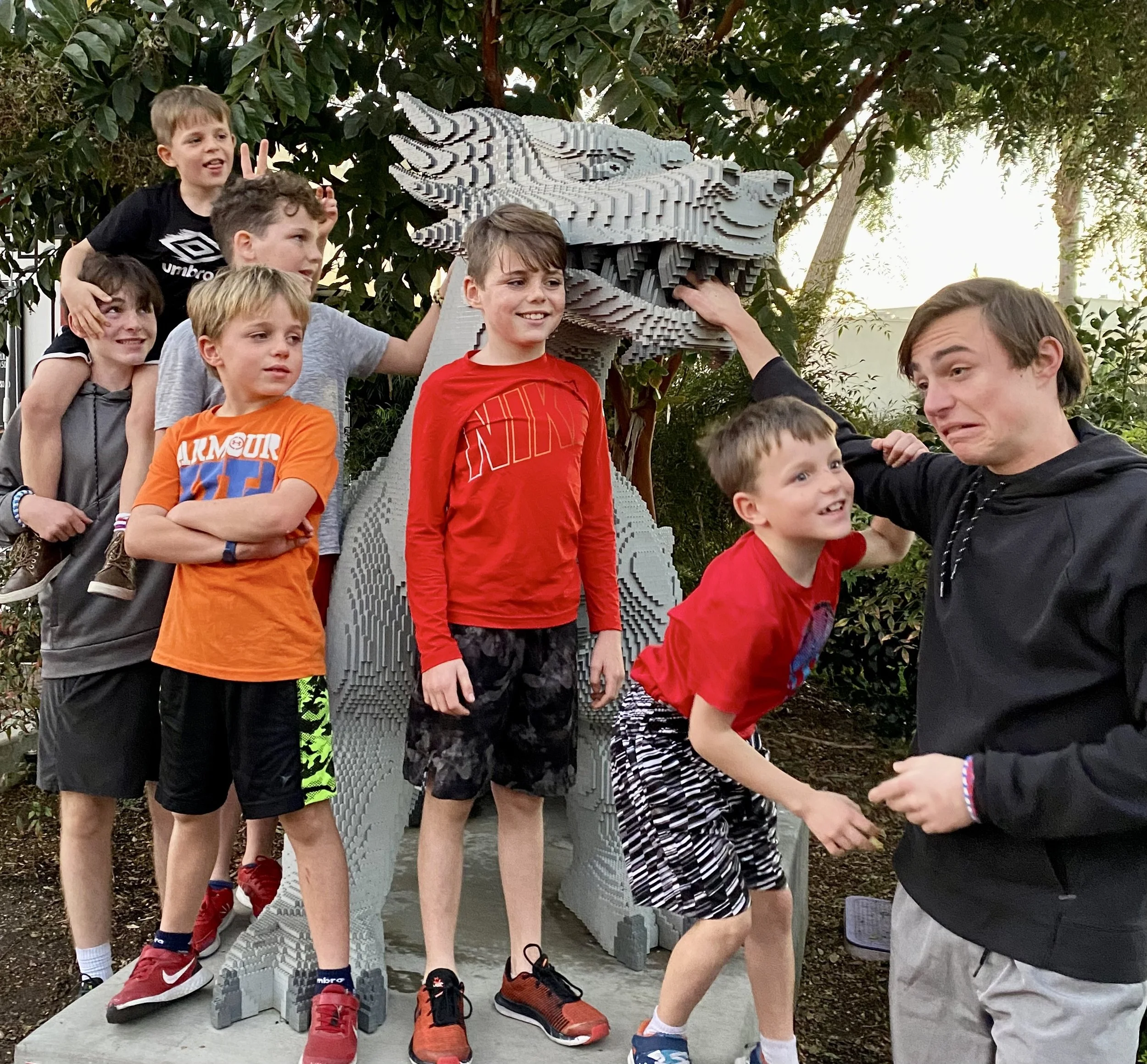 Legoland - Jacob, Zeke, Bowen, Beckett, Caleb, McKade and Jacob, with his hand devoured by a dragon.