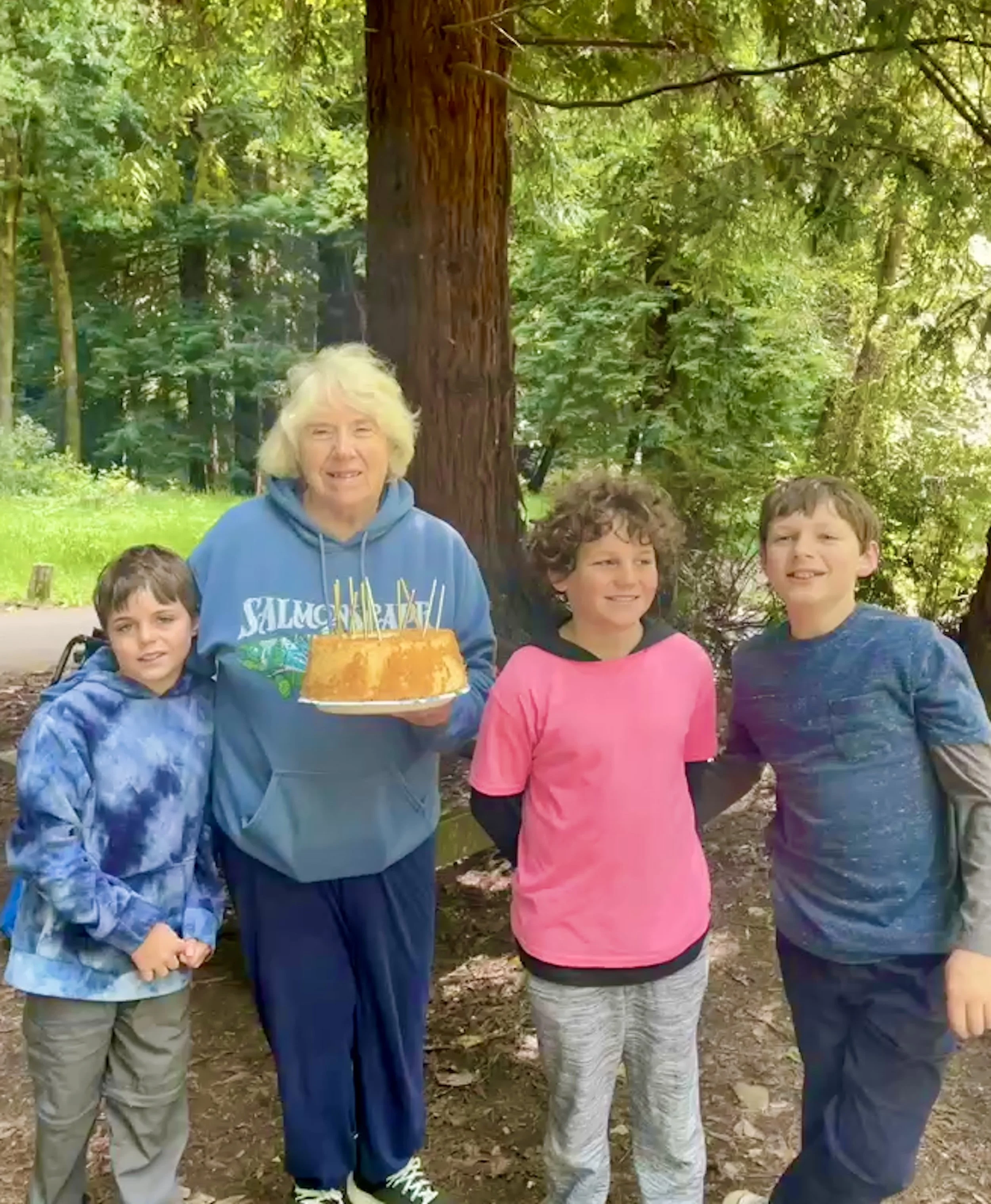 Redwood Forest Celebration of Grandma Judy’s Birthday - June 2022 - Caleb, Grandma Judy, Beckett and Kellyn