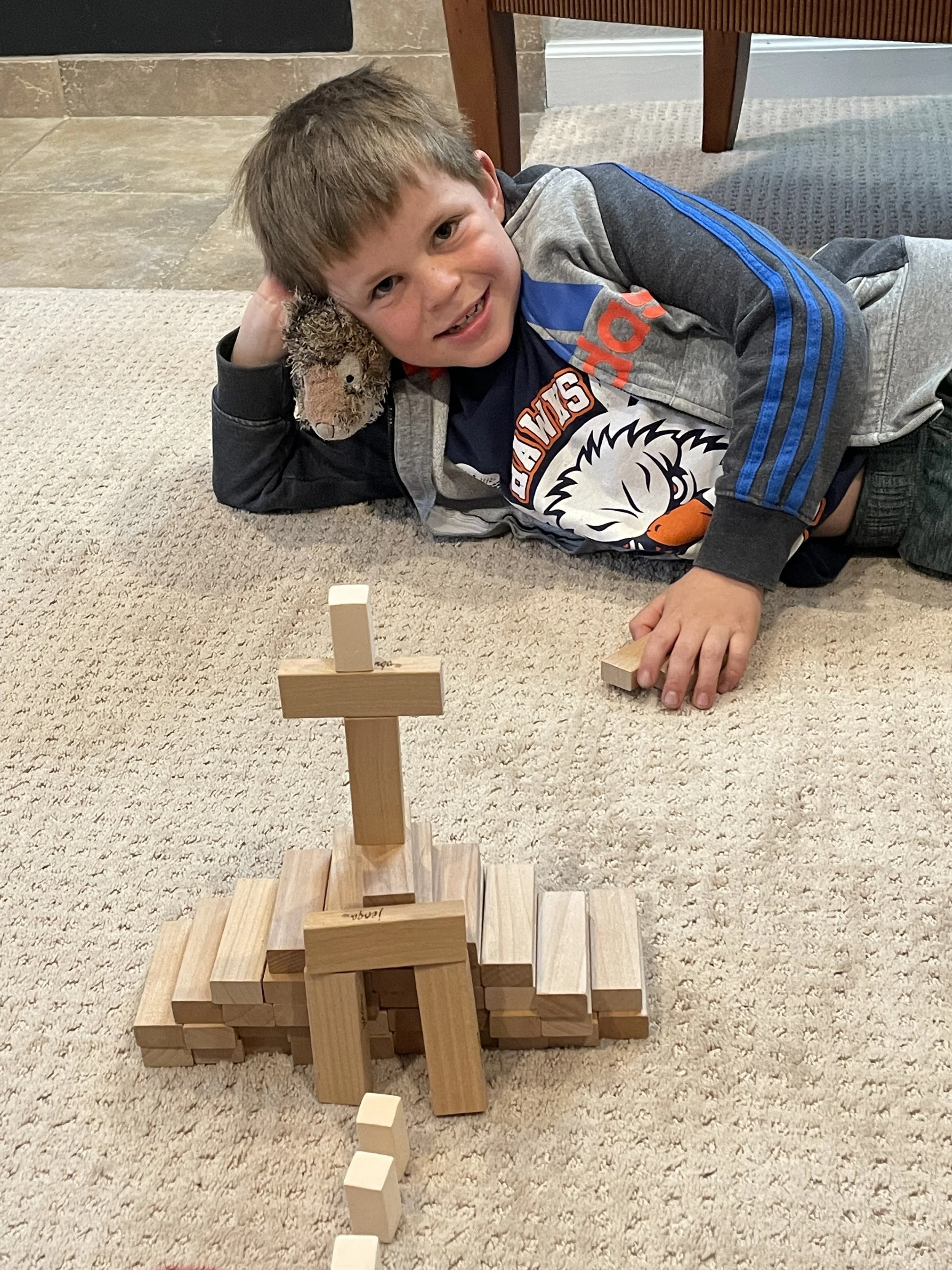 Bowen, age 7, and siblings love to build with these blocks…his soldiers…