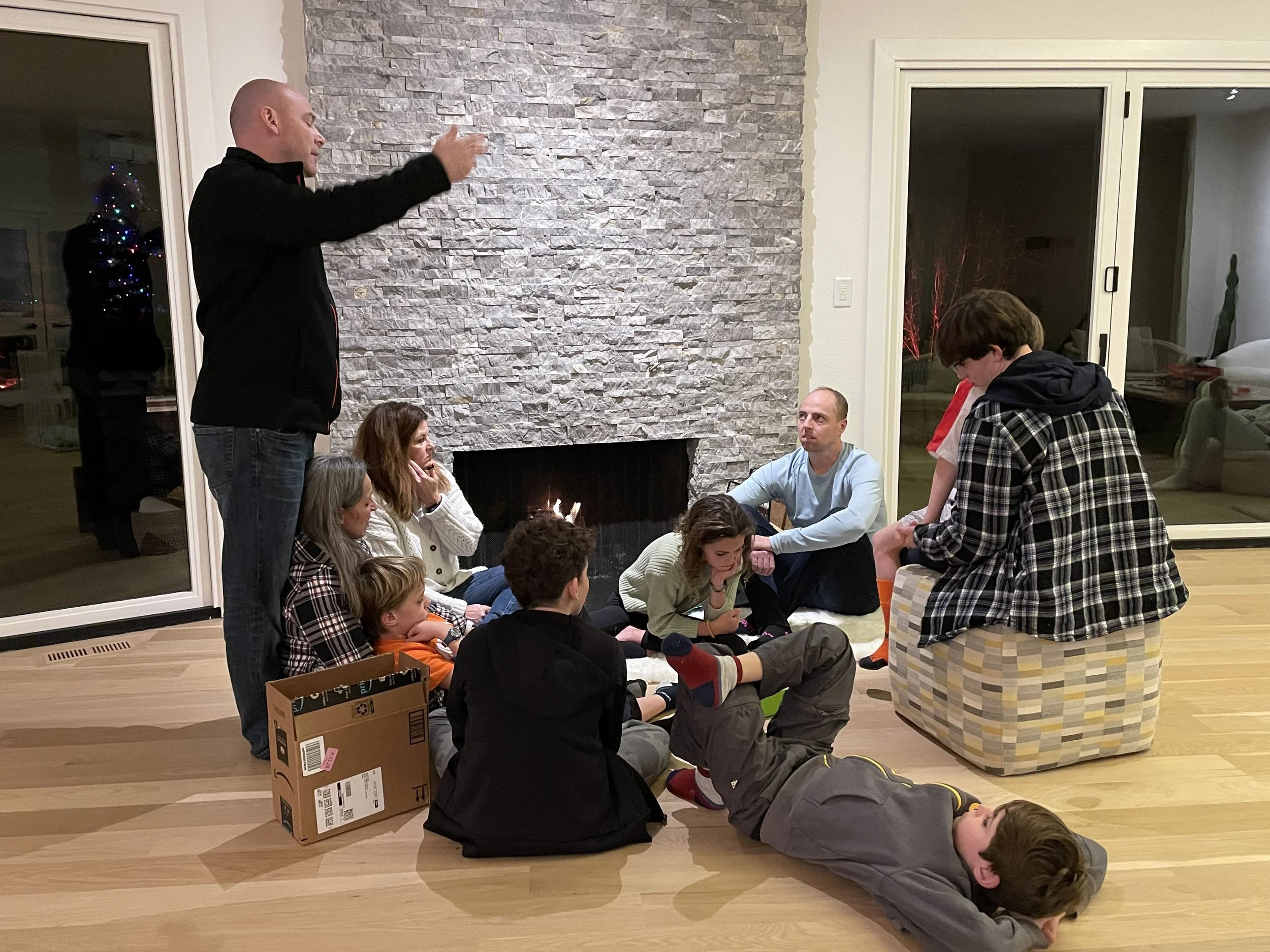 Hornick Family After Christmas Gathering at David and Anne’s….planning for next summer’s event(s)” Jared, Jill, Bowen, Anne, Sarah, Dave, trip, Titan, Caleb, and Beckett.