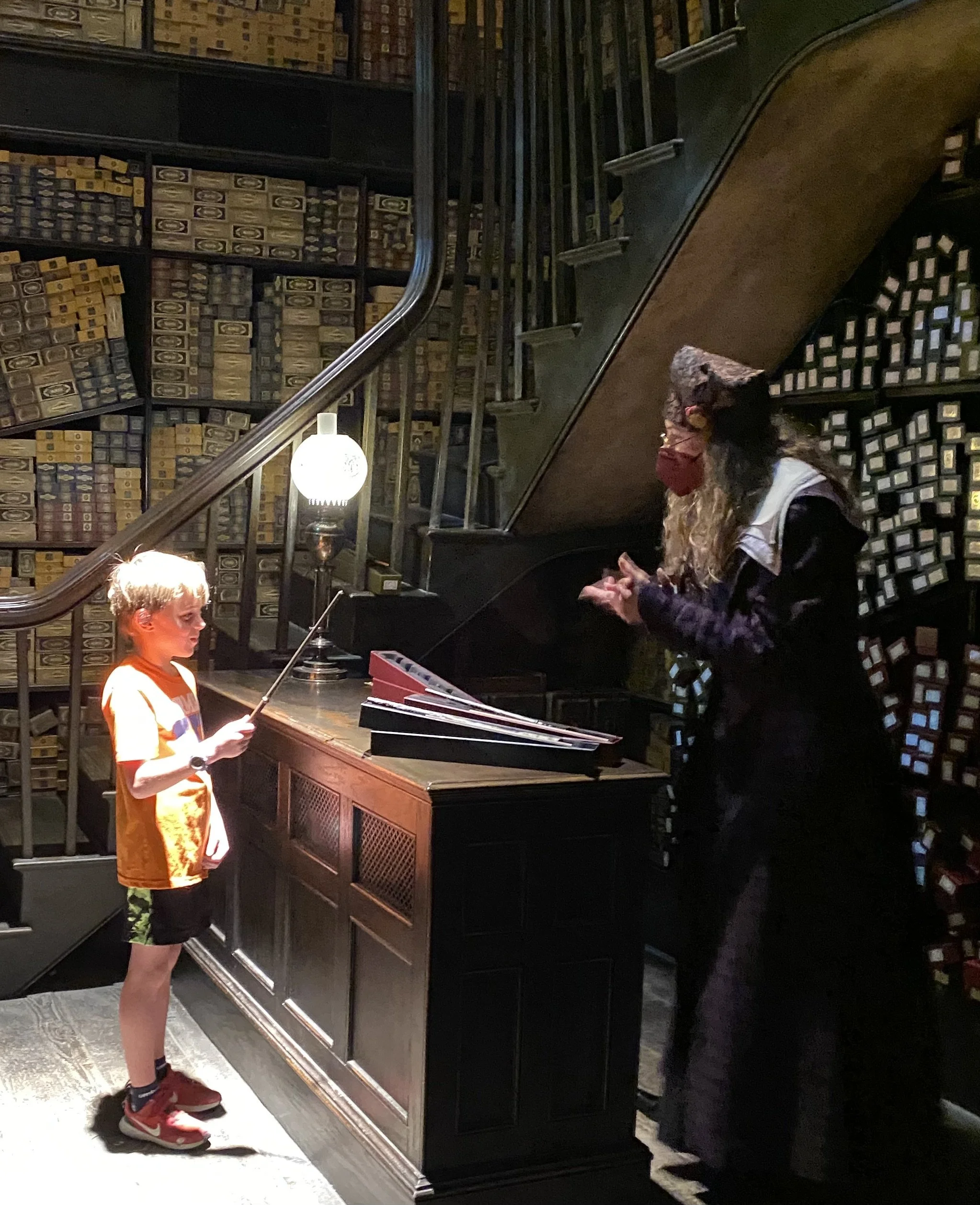 Bowen was chosen to select a wand…then he said he was a triplet, so all of them chose wands….then alllll the boys chose wands at Ollivander’s Wand Shop on Diagon Alley.